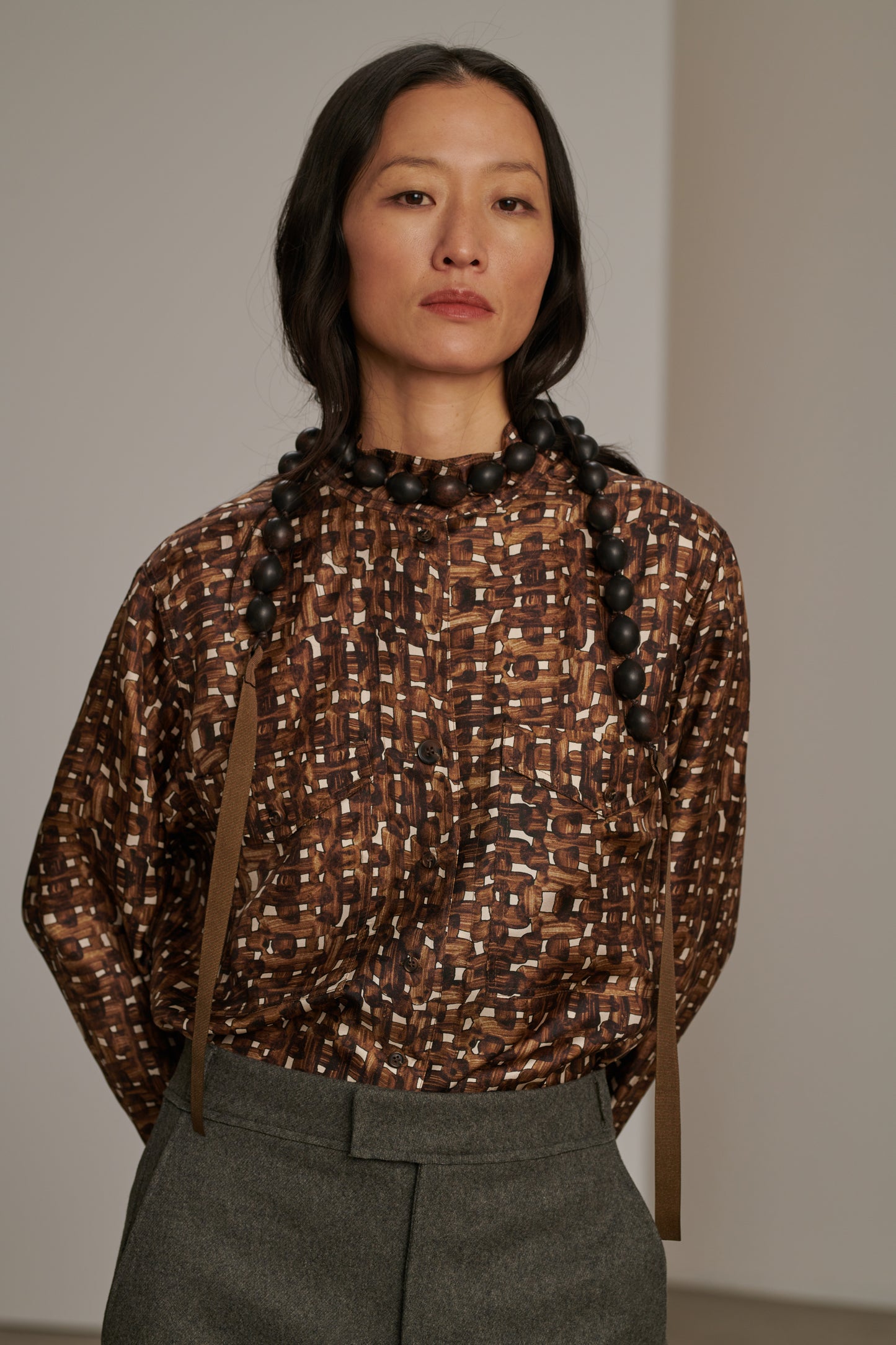 BARRIE is a pair of trousers made from wool cloth, with a loose fit. Featuring a delicately rounded leg and a pronounced pleat at the lower leg, it creates a sophisticated silhouette. Made from warm, thick, and soft wool cloth, it is ideal for the depths of winter.
