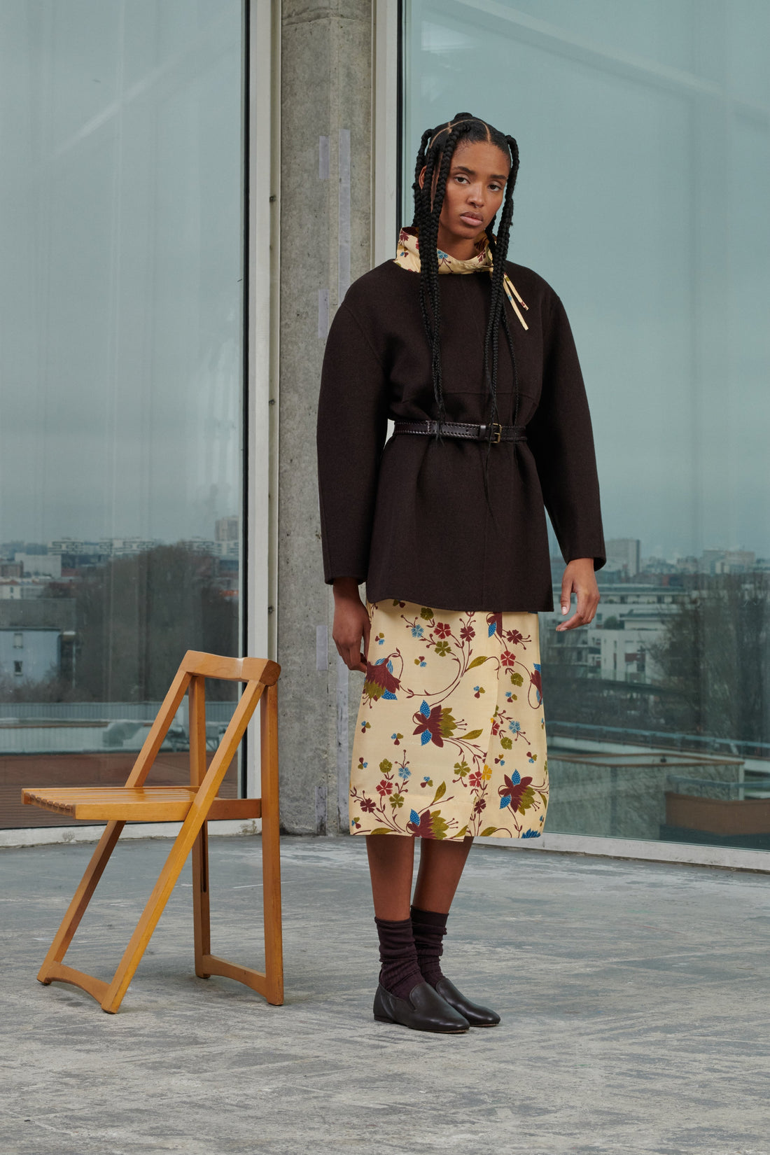 - Central concealed buttoning on the front to the mid-thigh